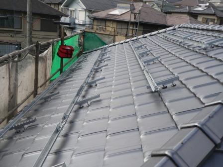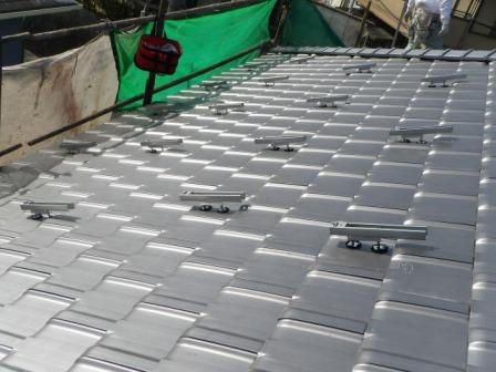 瓦の特定の位置に支持金具を設置。