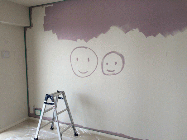 壁面全面に低刺激のクロス用塗料を自分で塗りました。