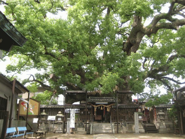門真市の三島神社にあるクスノキのことなんですが、調べてみると樹齢1000年以上といわれ国の天然記念物に指定されている日本有数のクスノキの巨木だそうです。