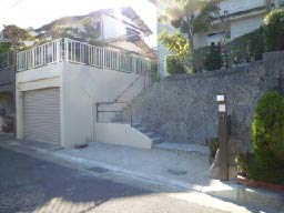 最後に階段の補修部分及びガレージの塗装をして、工事完了になりました。塗装の色目はお客様も「どのような色にするか?」大変お悩みになり、私と検討してお決めになられました。仕上がりは「良い色合いになった。」と大変ご満足いただけました。