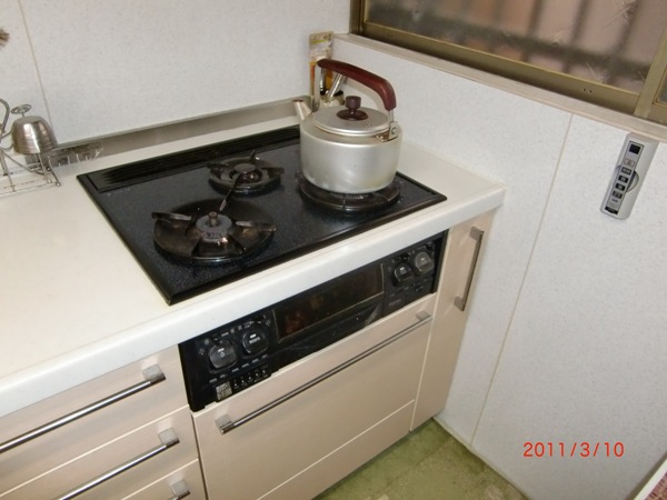 既存のガスコンロを取り外し、新たにIHを設置します。