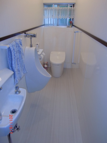 男性陣より小便器を残してほしい、女性陣よりホテルのトイレのイメージにて変貌させてほしいとの要望にお答えした作品です。